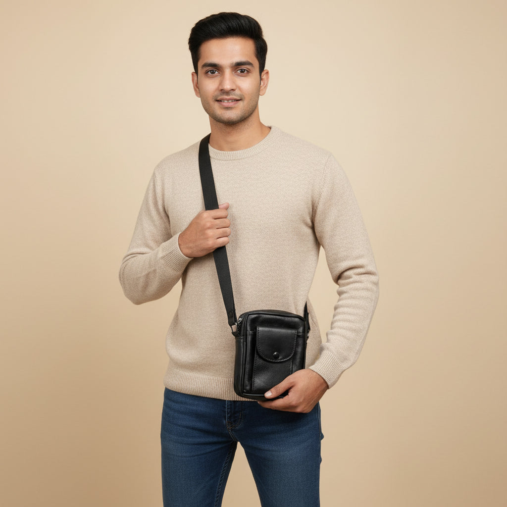 Expertly crafted from genuine leather, this Small Leather Sling Bag is perfect for both men and women. Its versatile design and multiple pockets make it a must-have accessory. Keep your belongings organized and secure in style.