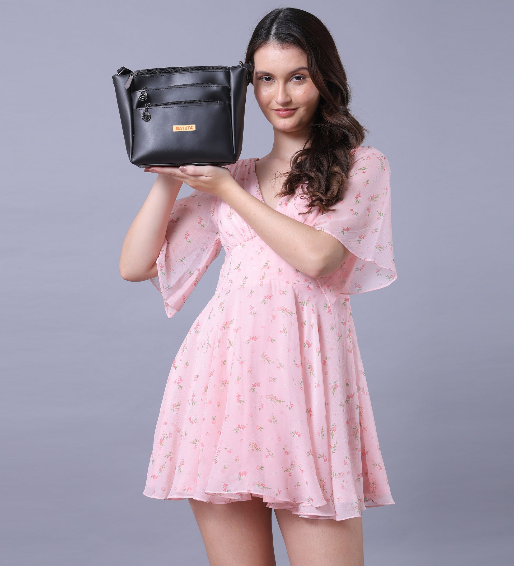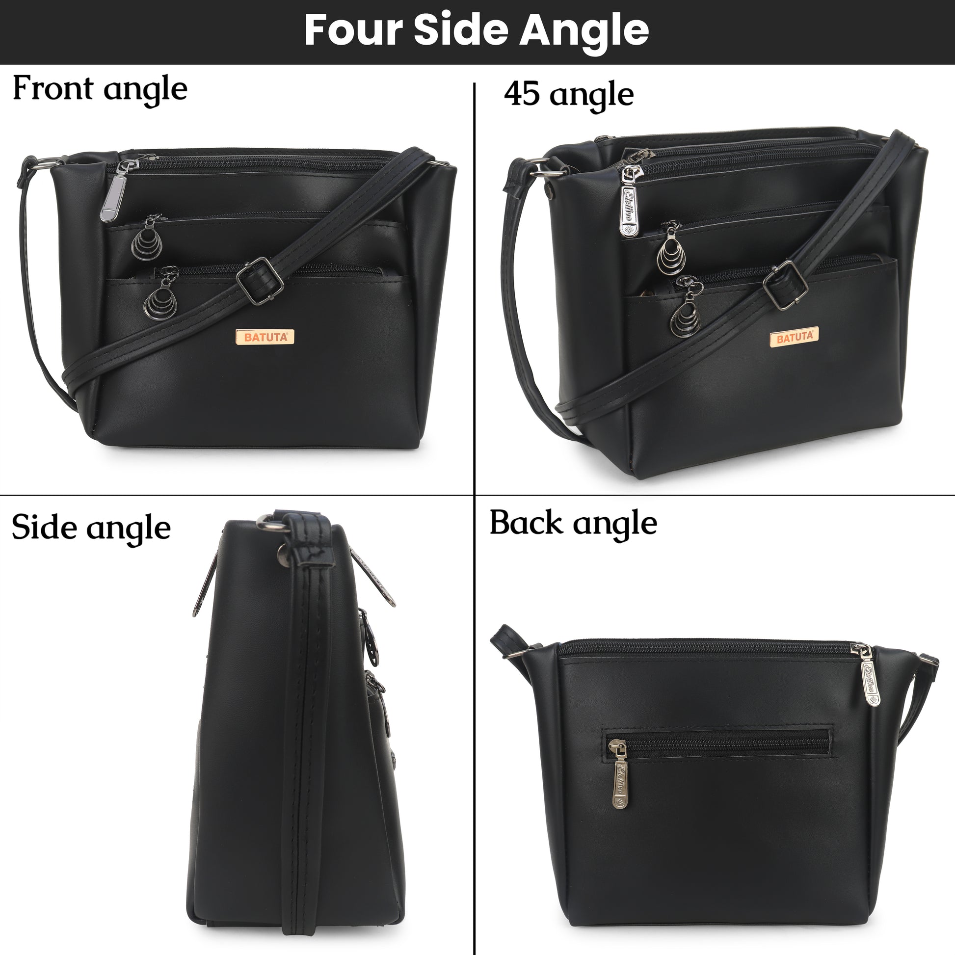 BATUTA Women's Multi-Zipper Sling Bag, PU Leather Crossbody Purse,