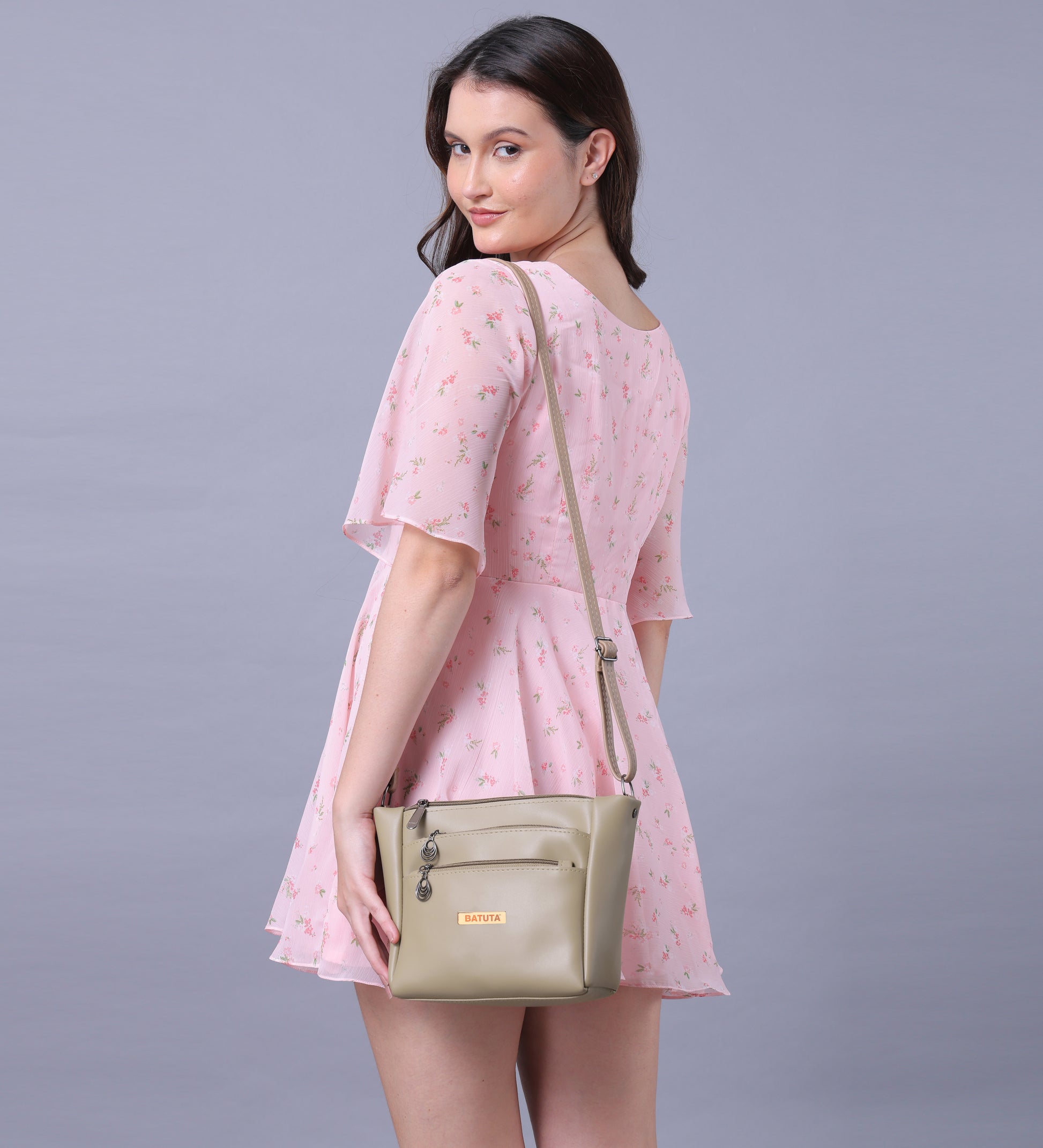 - DESIGN: Stylish crossbody sling bag crafted from premium PU leather in a lovely dusty with silver-toned hardware accents