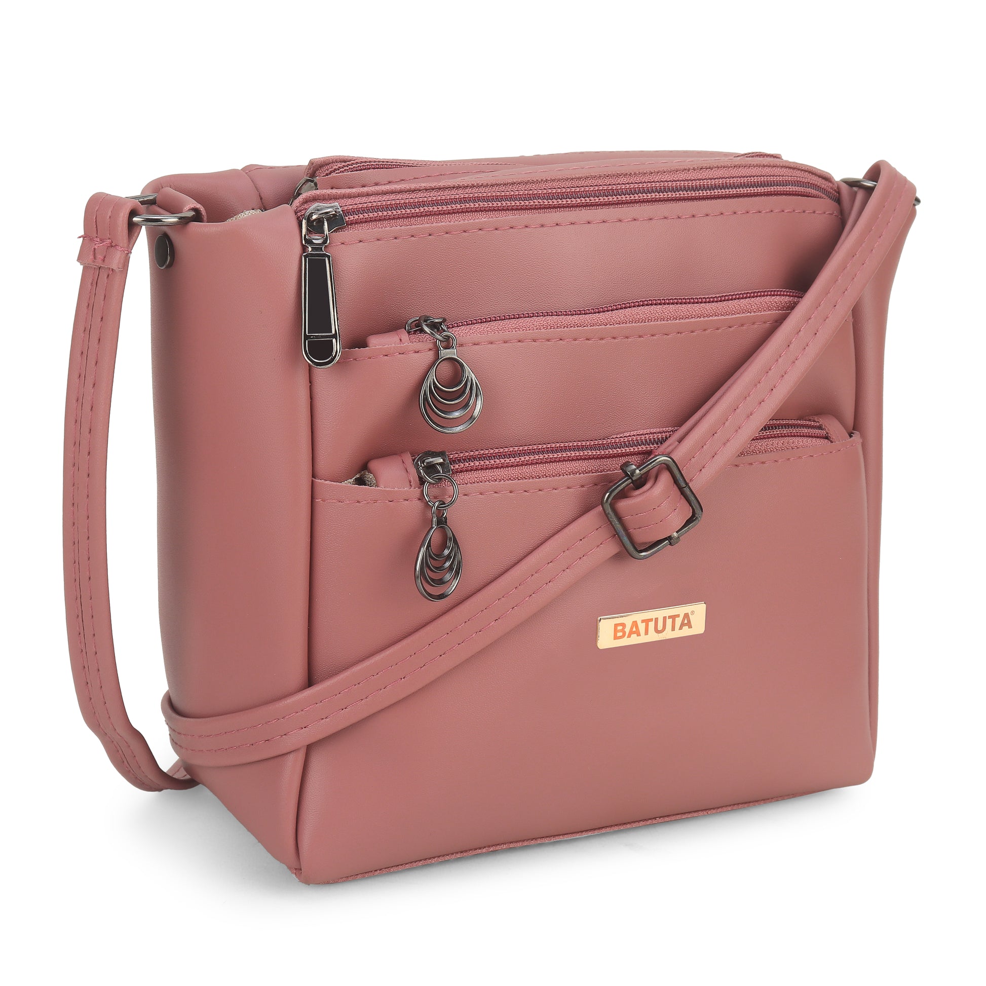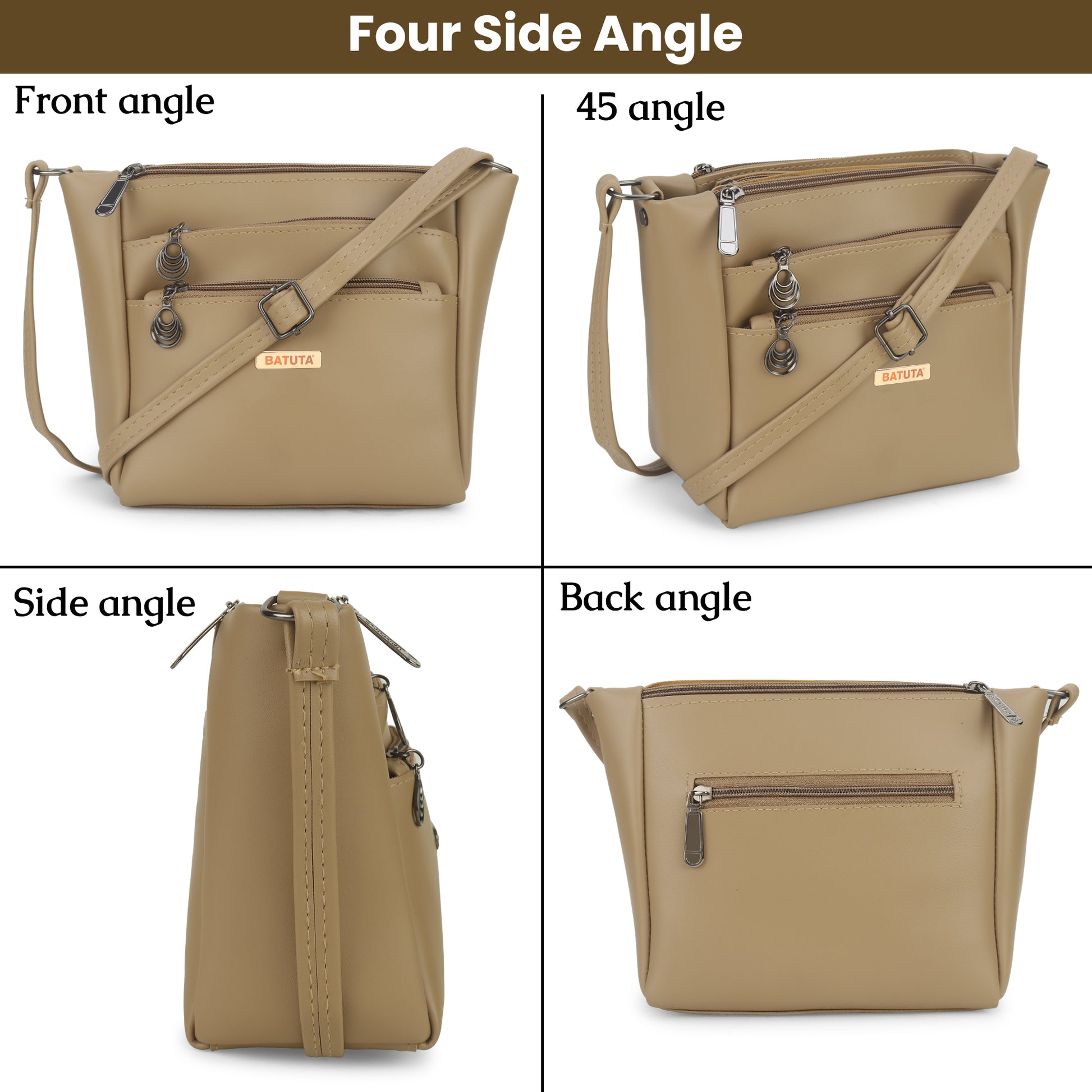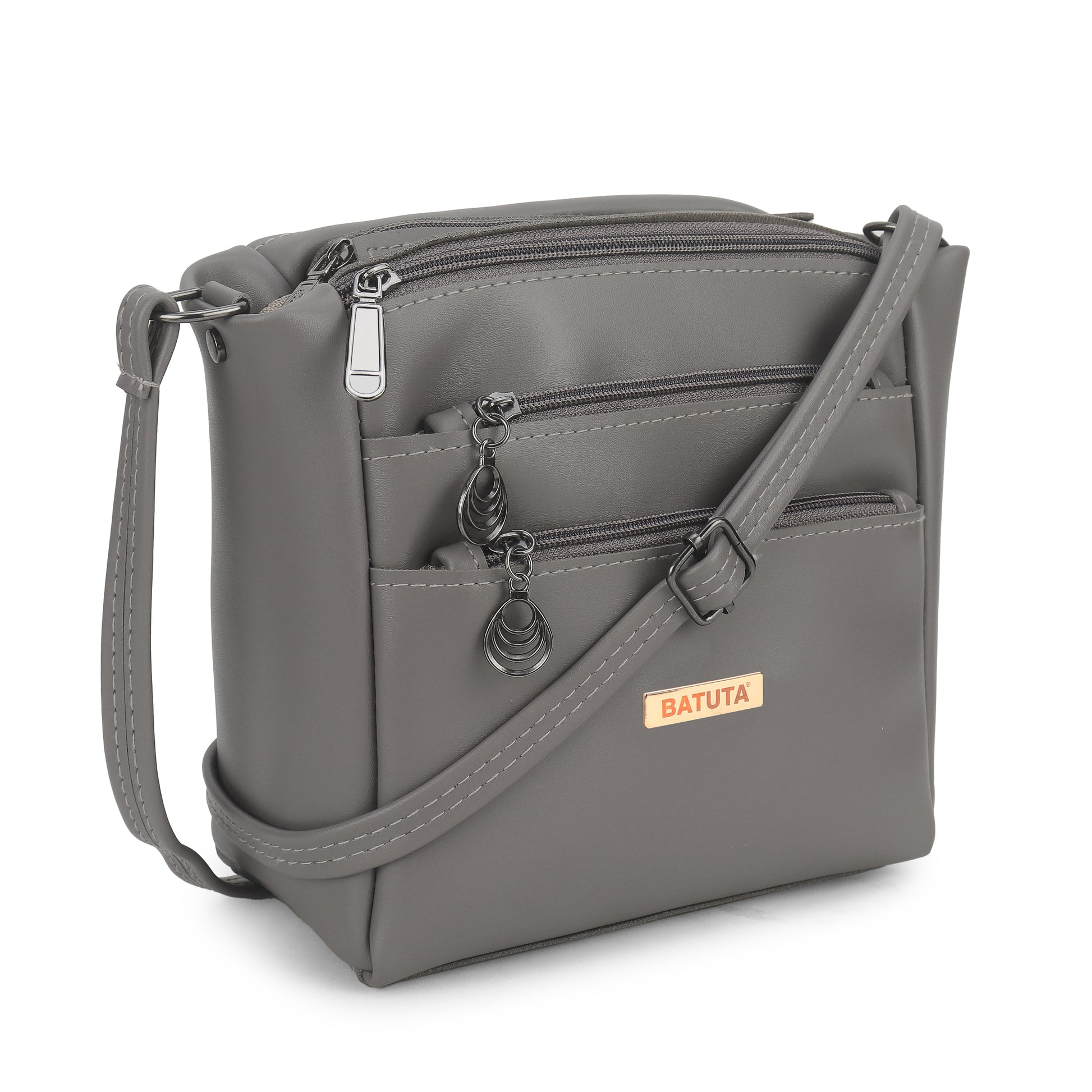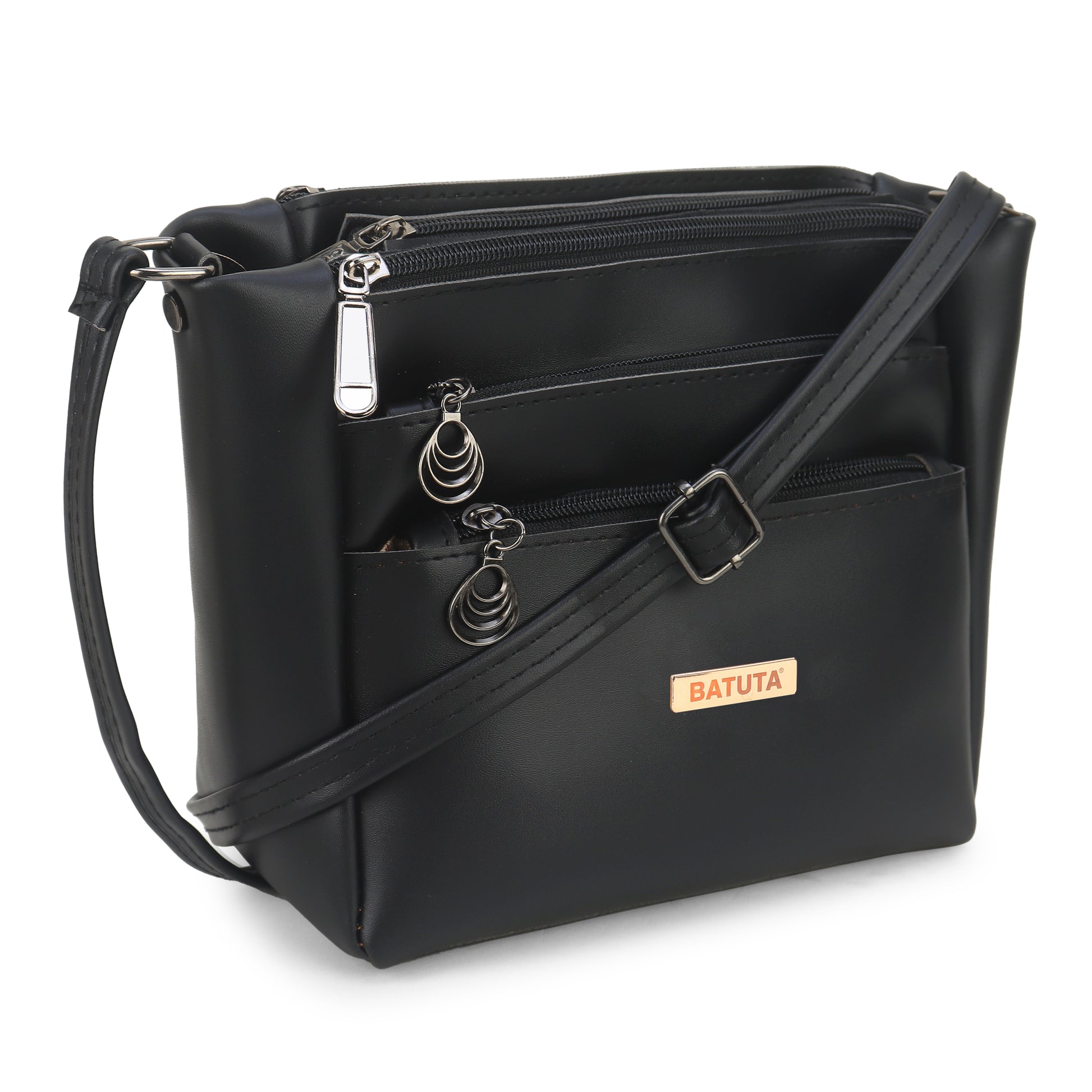 BATUTA Women's Multi-Zipper Sling Bag, PU Leather Crossbody Purse,