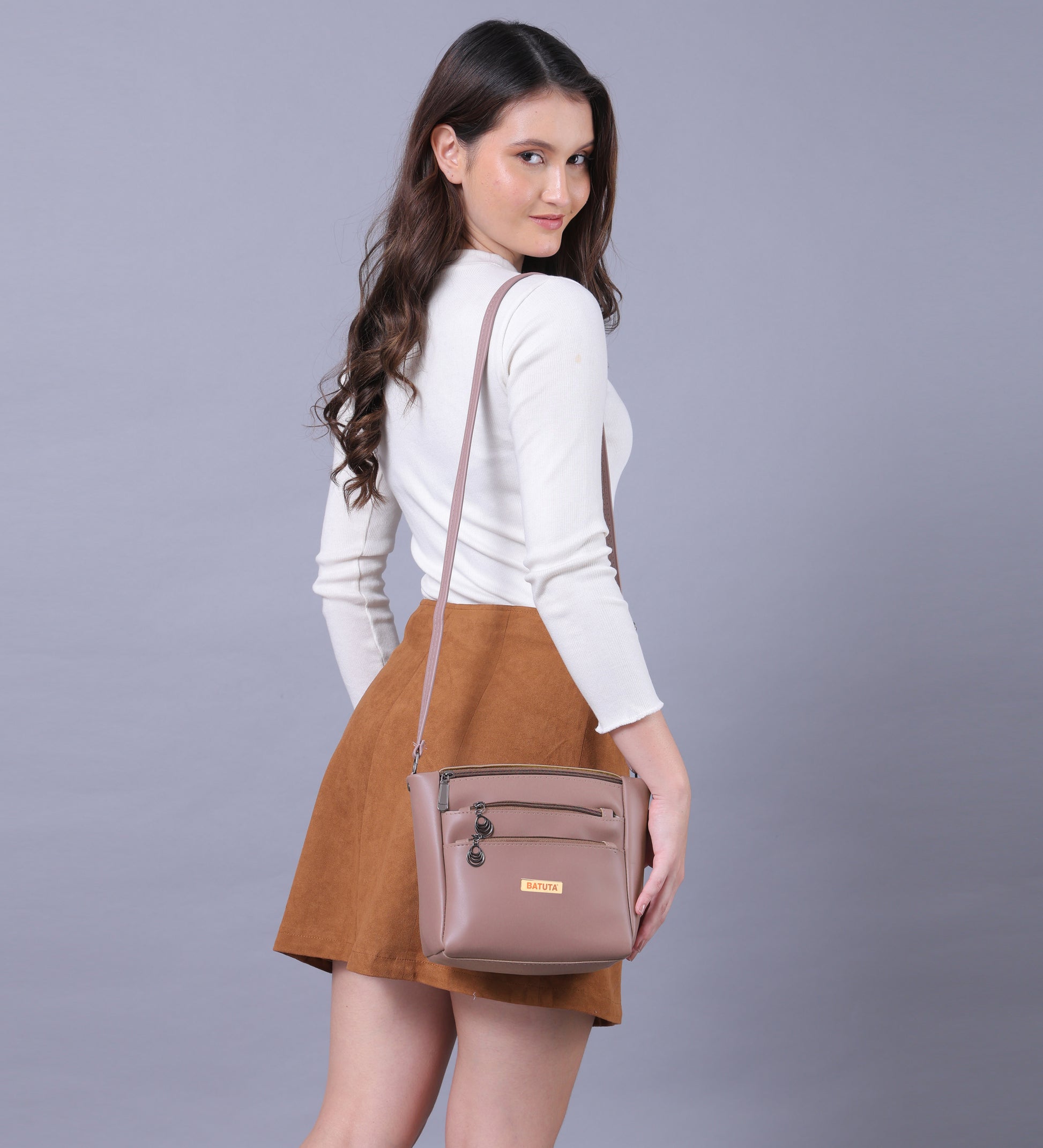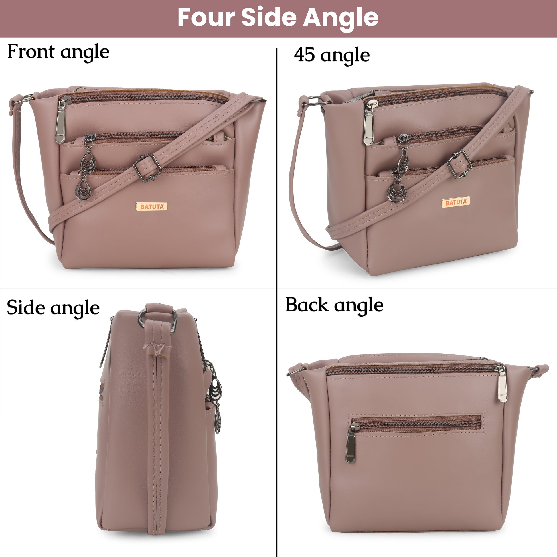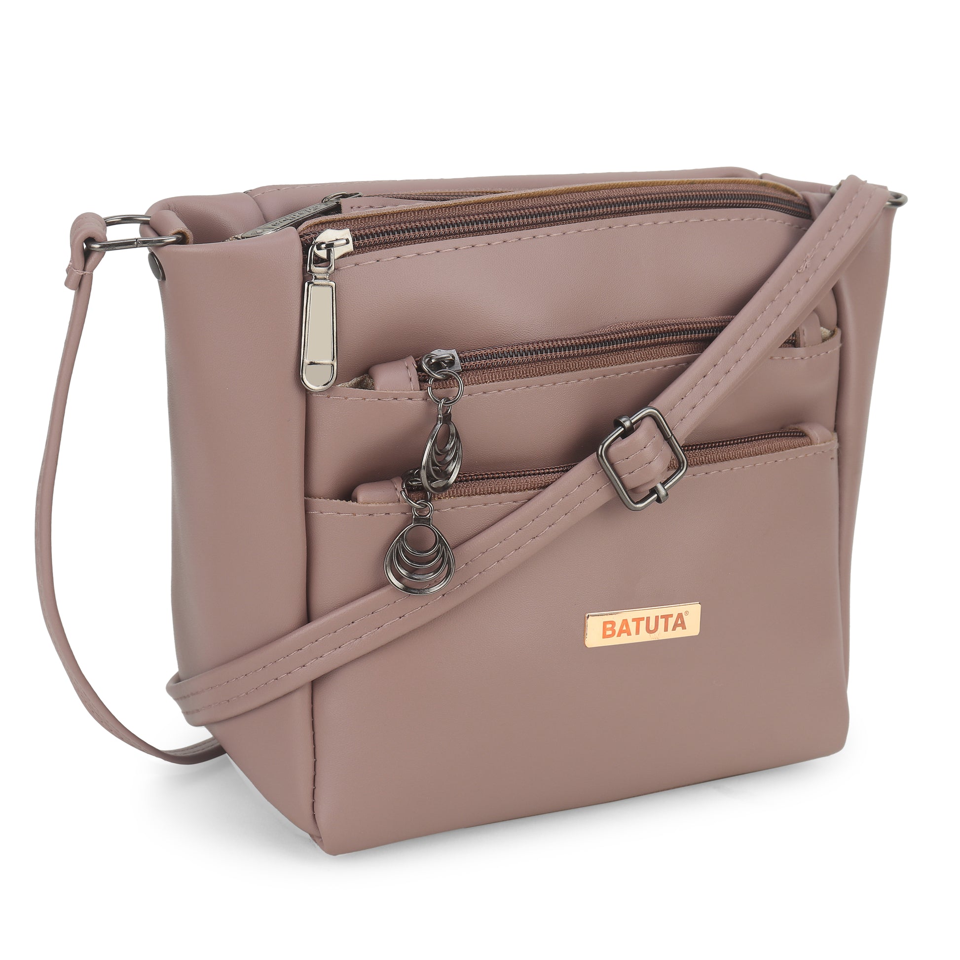 BATUTA Women's Multi-Zipper Sling Bag, PU Leather Crossbody Purse,