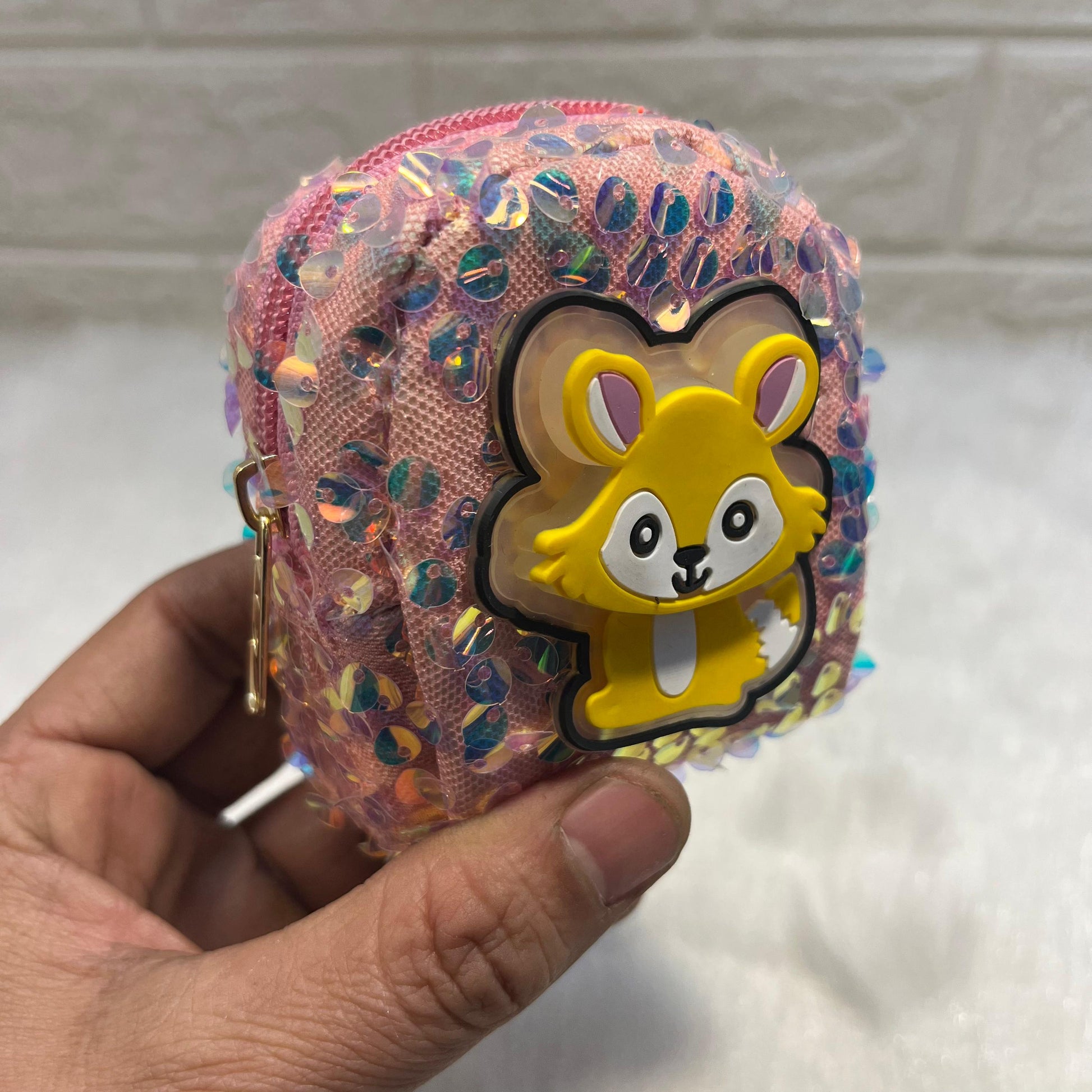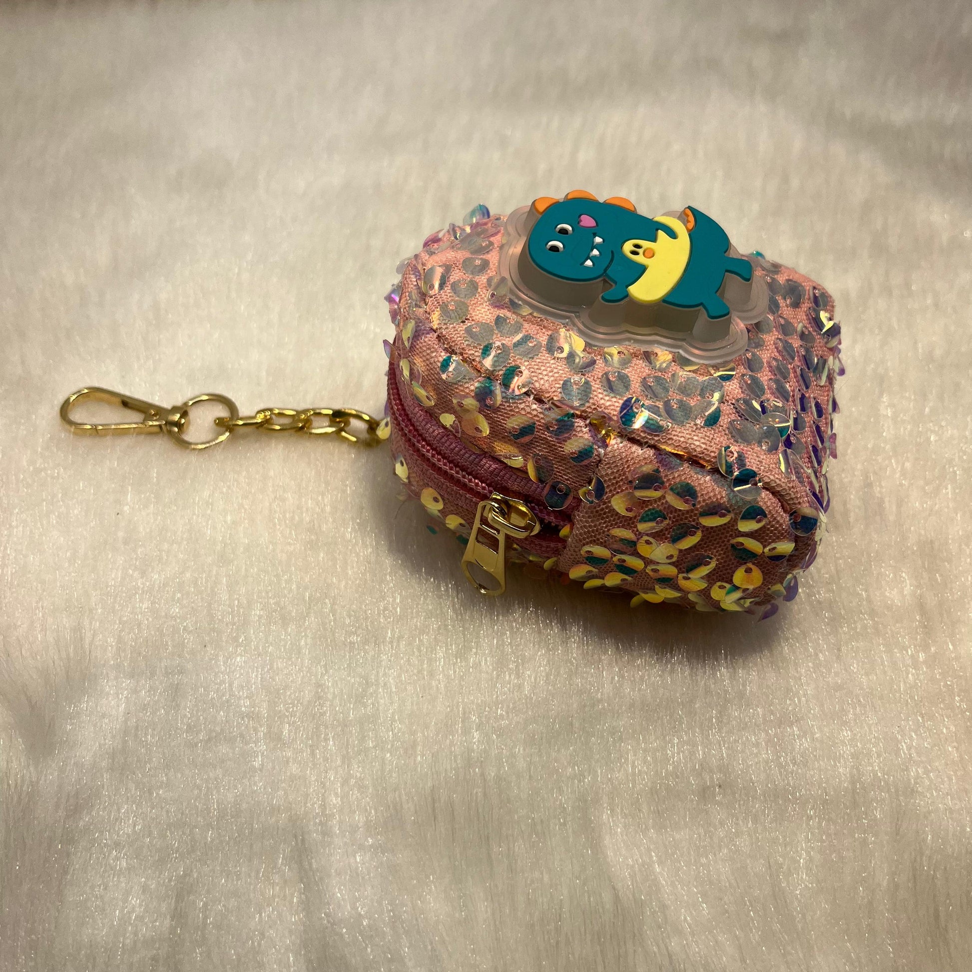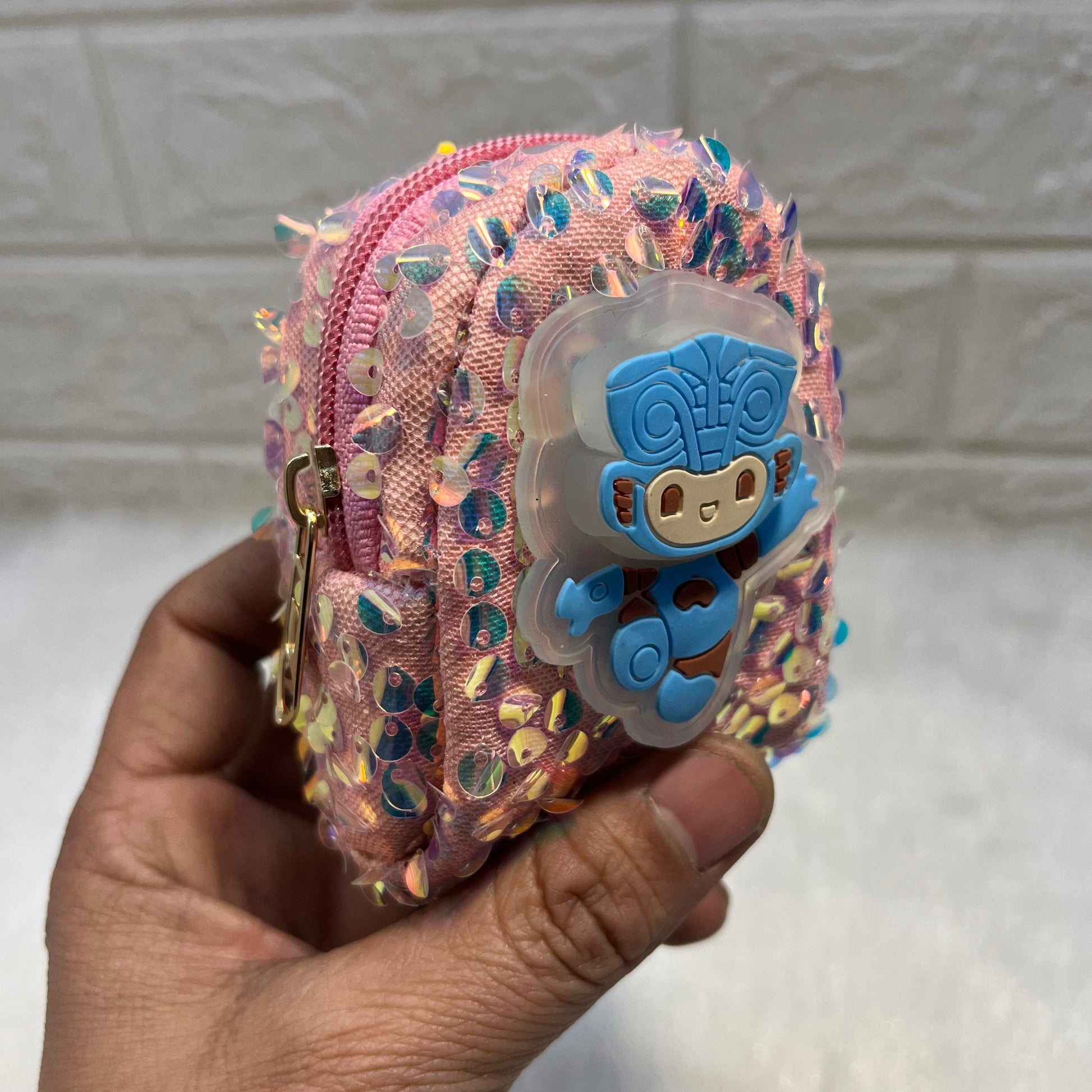 Girls Embroidery Zipper Mini Reversible Sequin Purse Key chain Pouch Bag (Multi colour, 8 x 7 x 4 cm)
