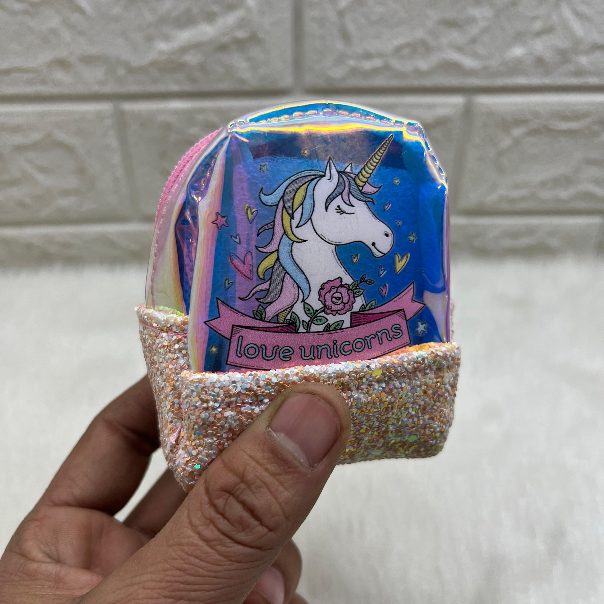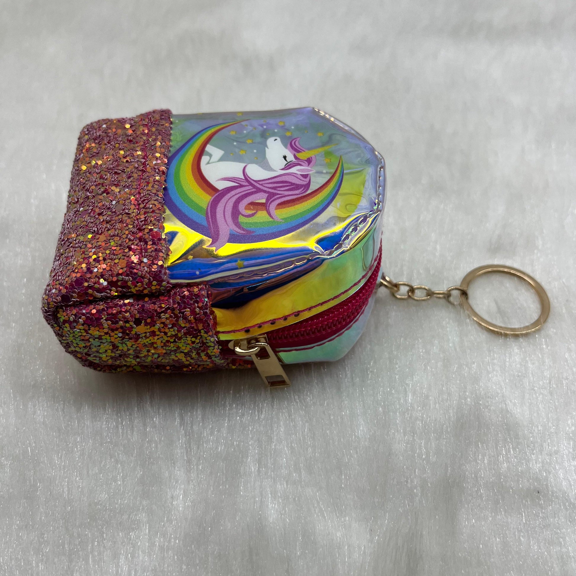 Material: PVC No. of Compartments: 1 Pattern: Embellished Net Quantity (N): 1 Sizes: Free Size (Length Size: 8 cm, Width Size: 6 cm) This mini reversible sequin purse key chain pouch bag is made of and features embroidery detailing. It comes in multi color and measures 8 x 7 x 4 cm. The reversible sequins allow you to change the color of the bag by simply brushing your hand over them. It's perfect for carrying small items like keys, coins or other essentials on the go. The zipper closure ensures secure storage, and the key chain attachment makes it easy to clip onto your bag or keys for convenient access Country of Origin: India