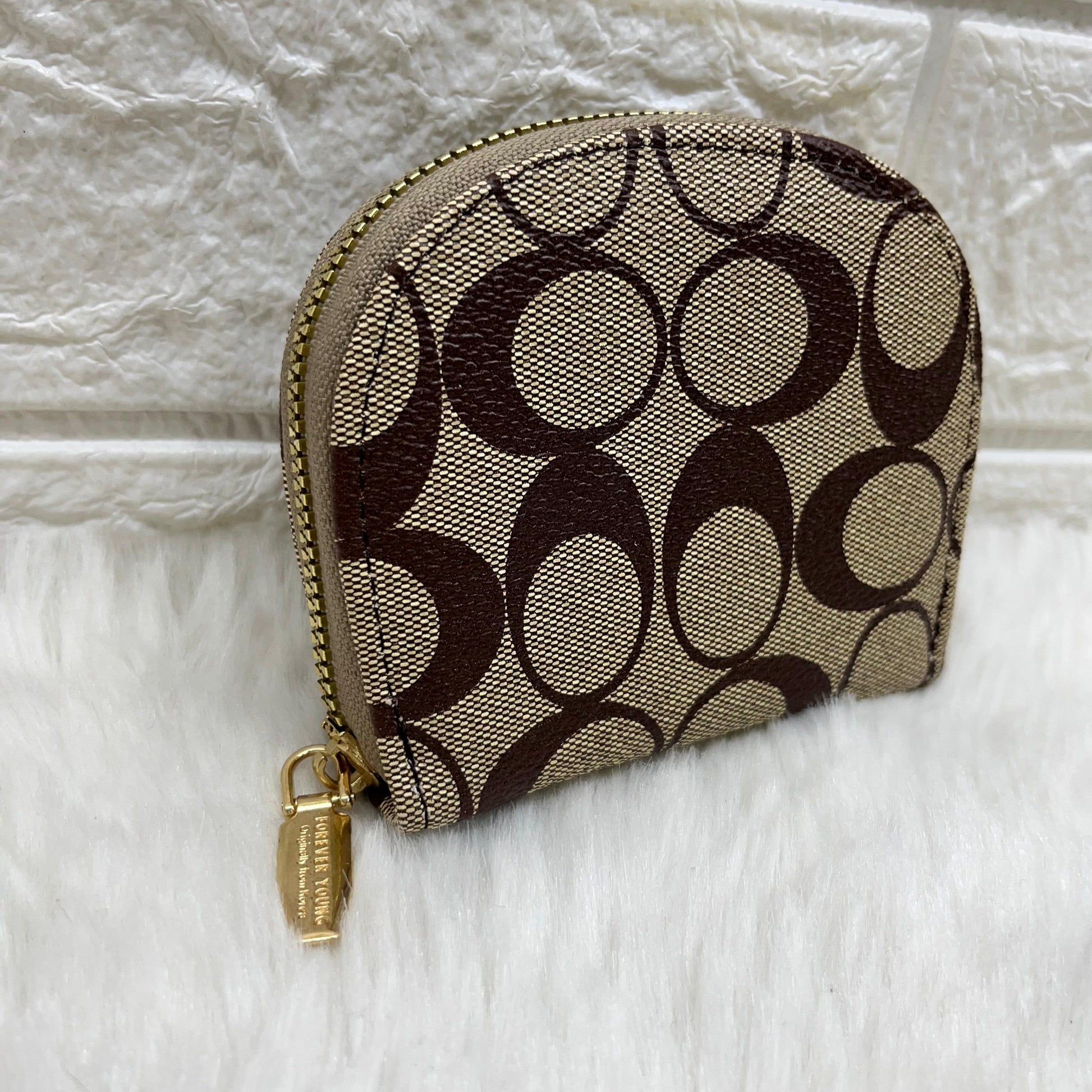 This compact wallet is designed for women and girls, featuring credit card slots, a coin compartment, and a small zipper closure. Perfect for carrying essentials in a secure and stylish manner.