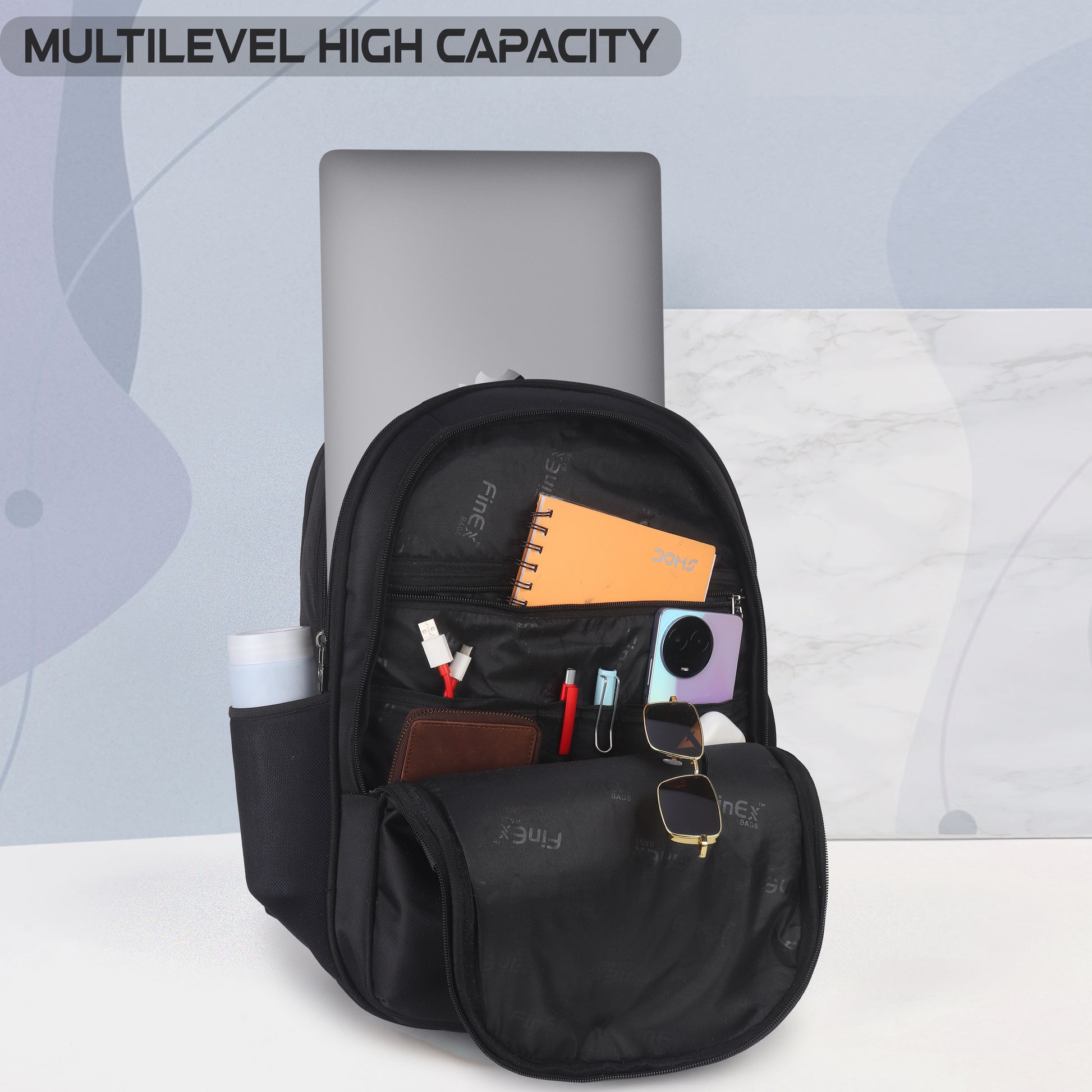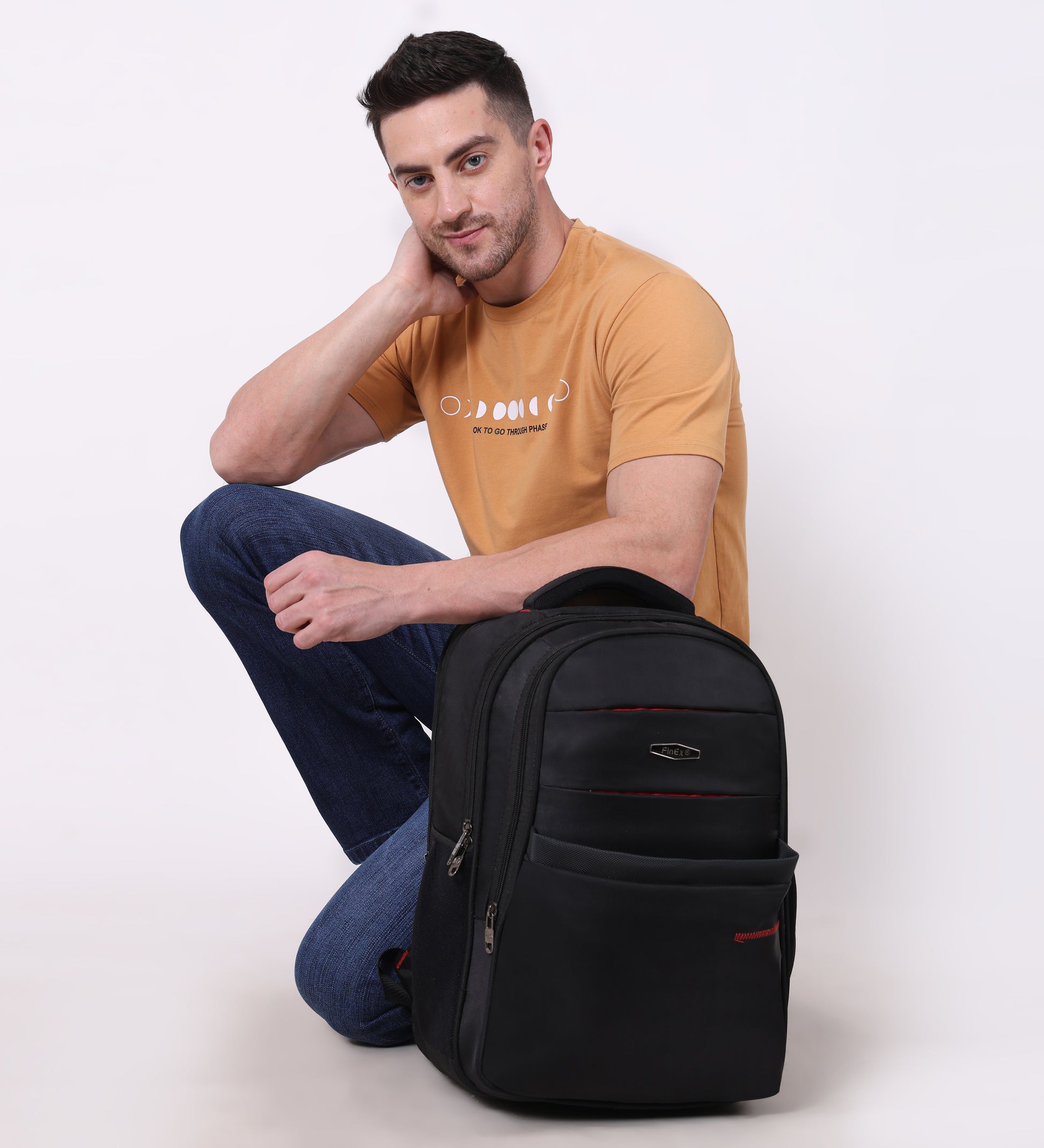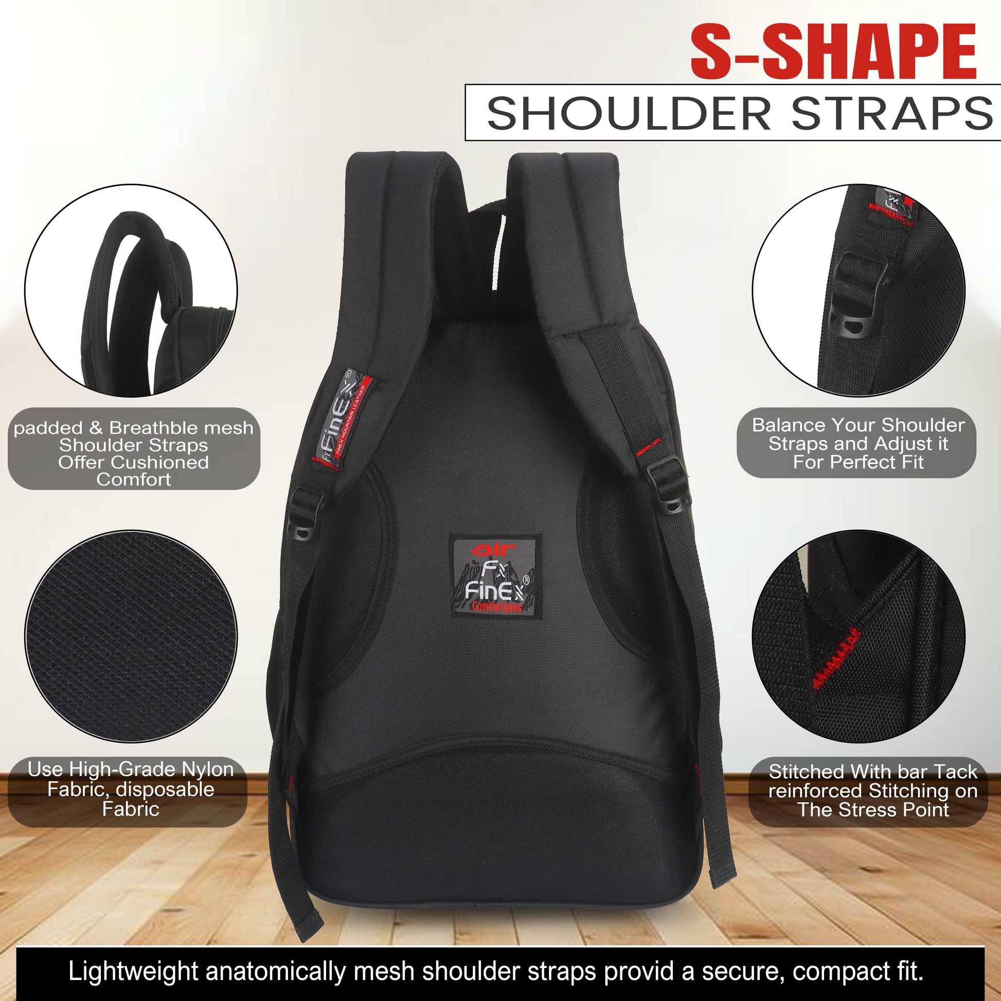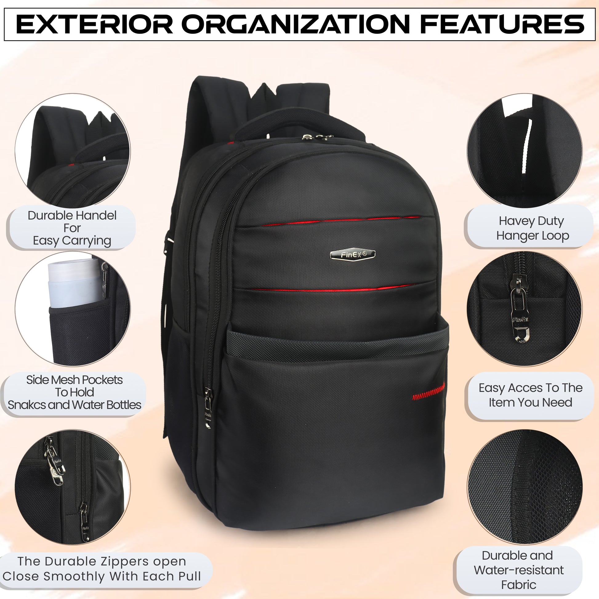 Introducing the Fine x backpack, a sleek and practical companion for your daily adventures. This sophisticated black backpack features multiple compartments with secure zipper closures, making it perfect for organised storage. The thoughtfully designed front panel showcases stylish red accents and curved stitching patterns that add a modern aesthetic touch. Crafted from durable material, it offers ample space for your essentials while maintaining a professional appearance. The ergonomic padded shoulder straps ensure comfortable carrying, while the mesh side pockets provide easy access to frequently needed items. Whether you're heading to work, university, or embarking on a short trip, this versatile backpack combines functionality with contemporary style. Its robust construction and practical design make it an ideal choice for everyday use.