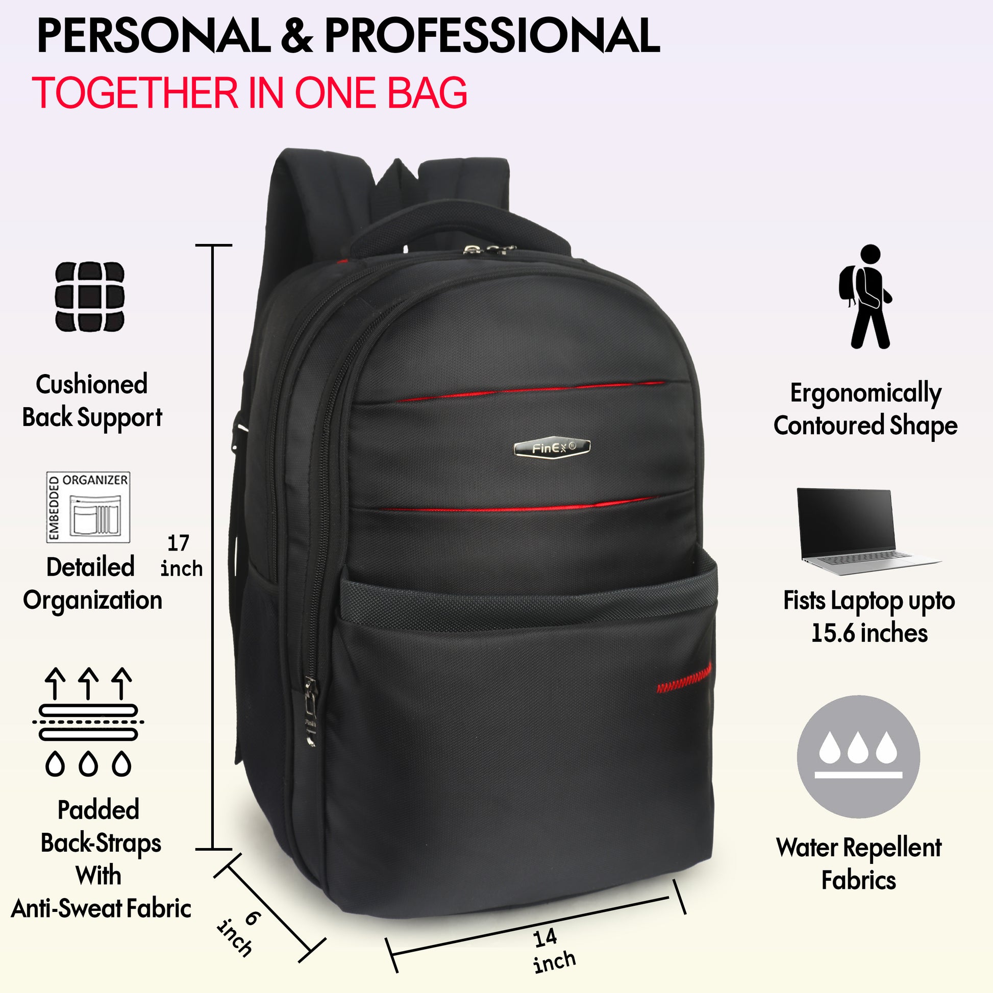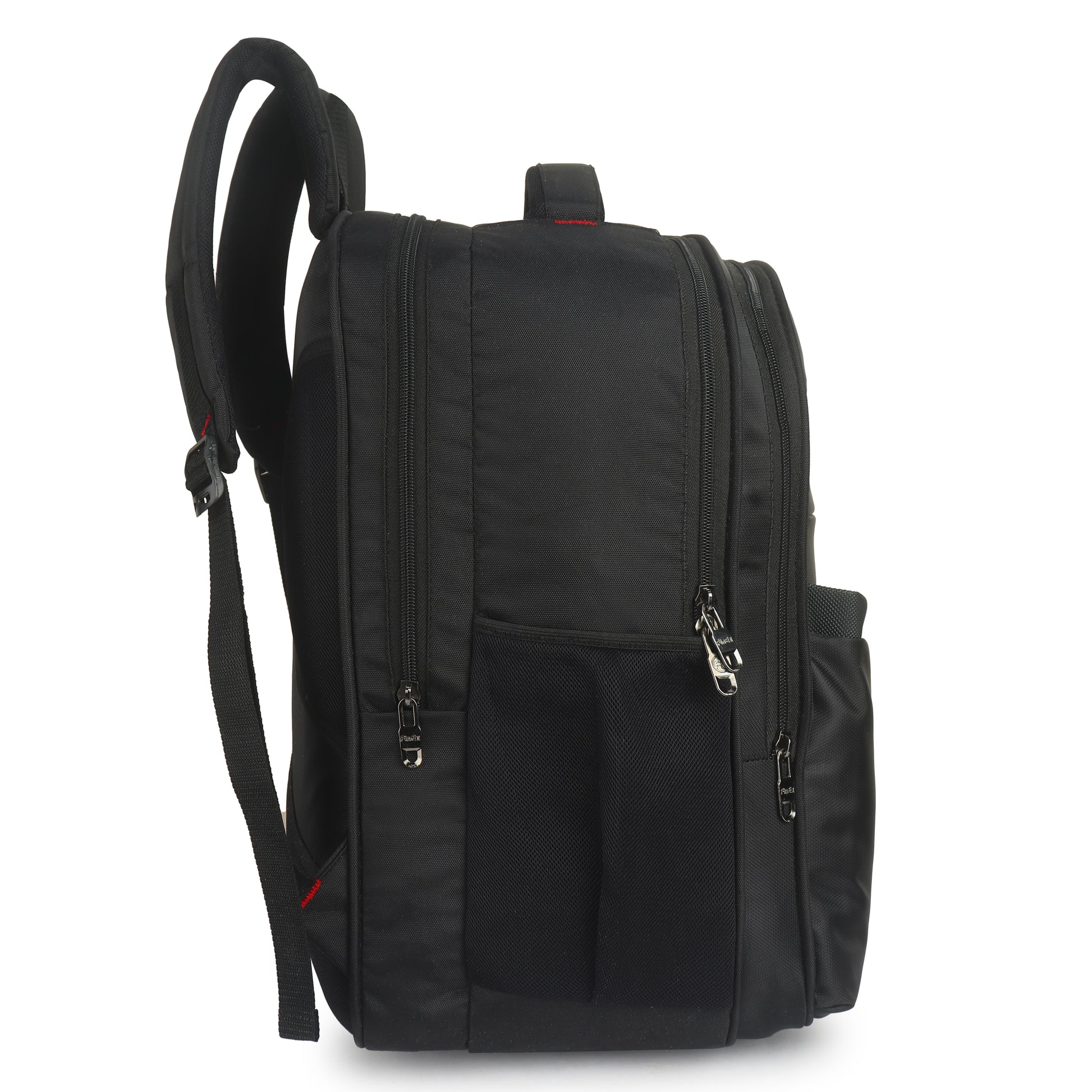 Travel Laptop Backpack, Multi-Compartment Design with Red Accents, Black