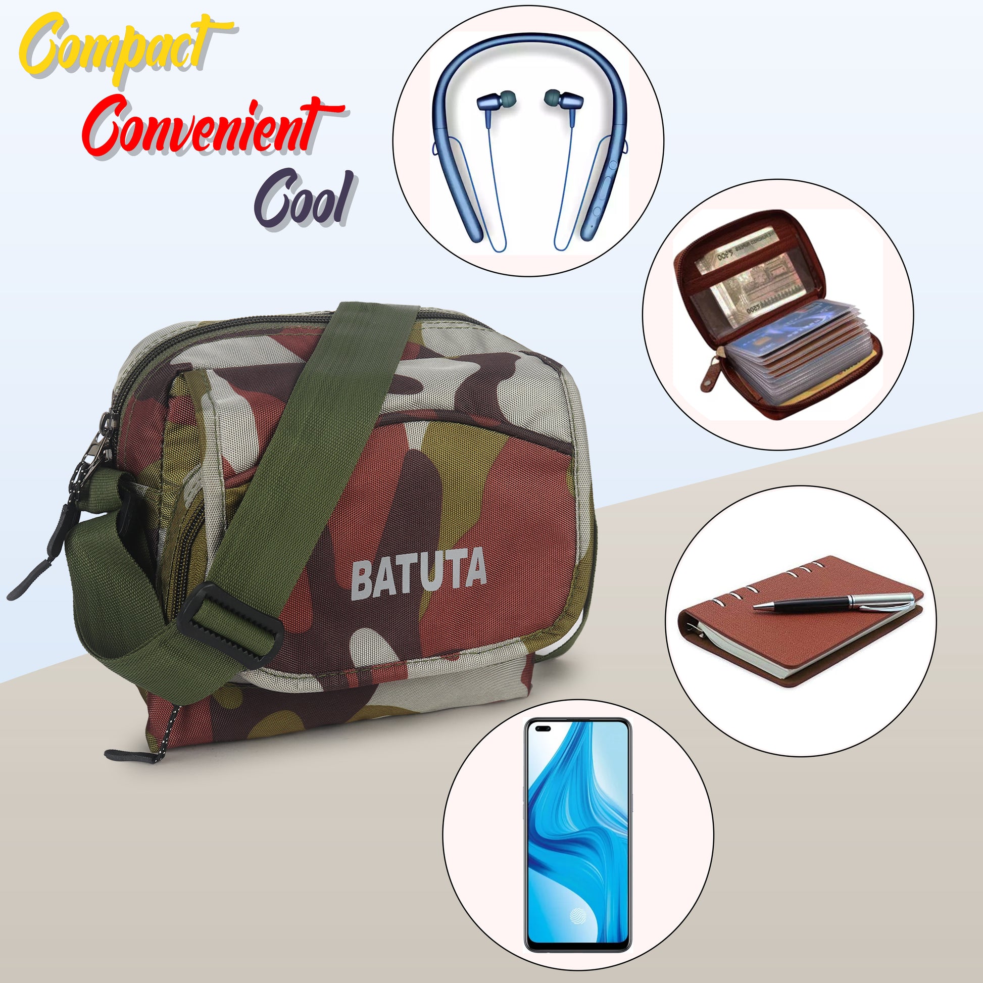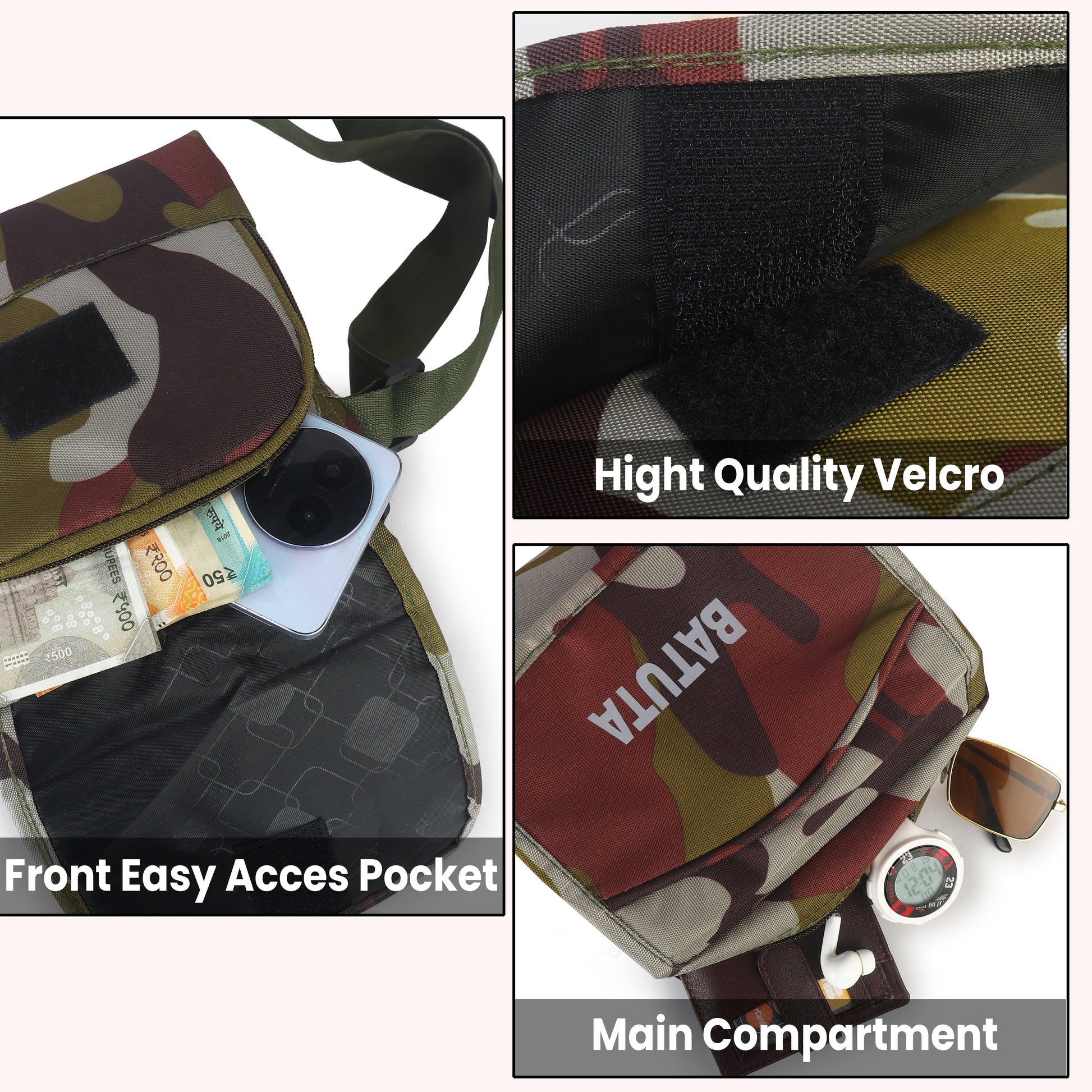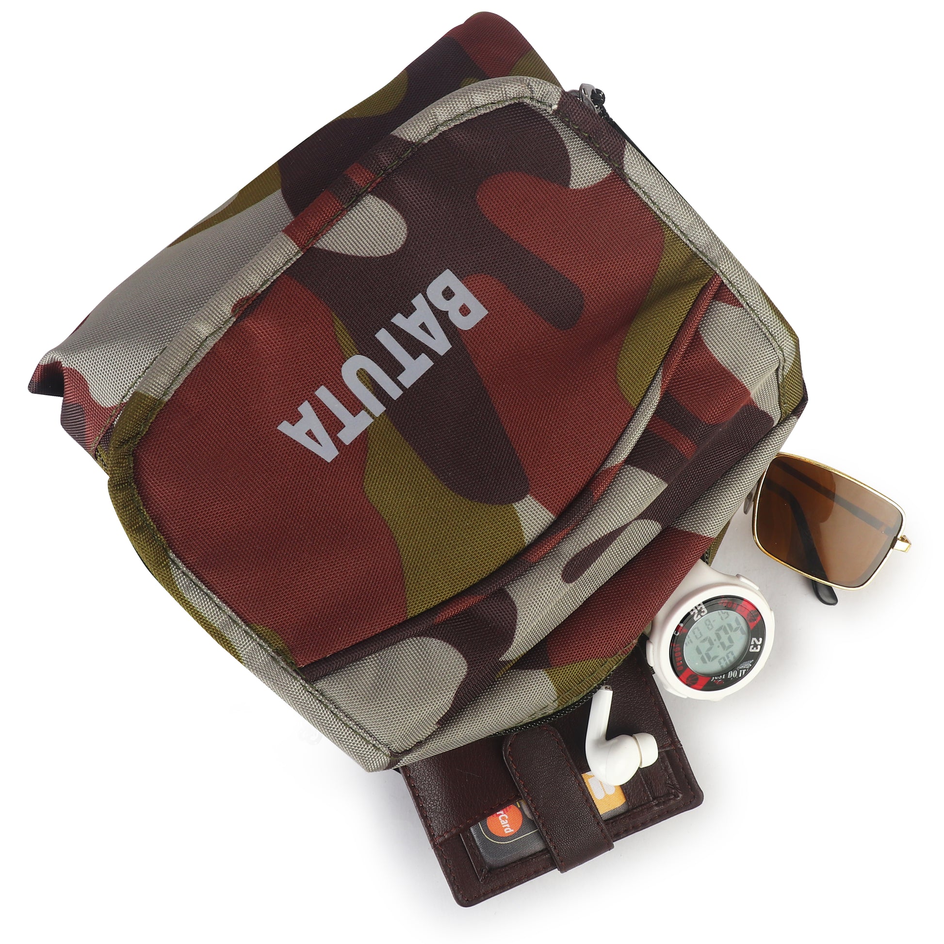 BATUTA - Army Print Waterproof Travel Sling Bag for Men - Durable Polyester Material