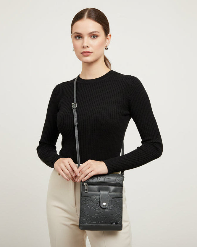 Its compact yet spacious design allows you to carry essentials like mobile phone, wallet, keys, cash, cards, and cosmetics easily.