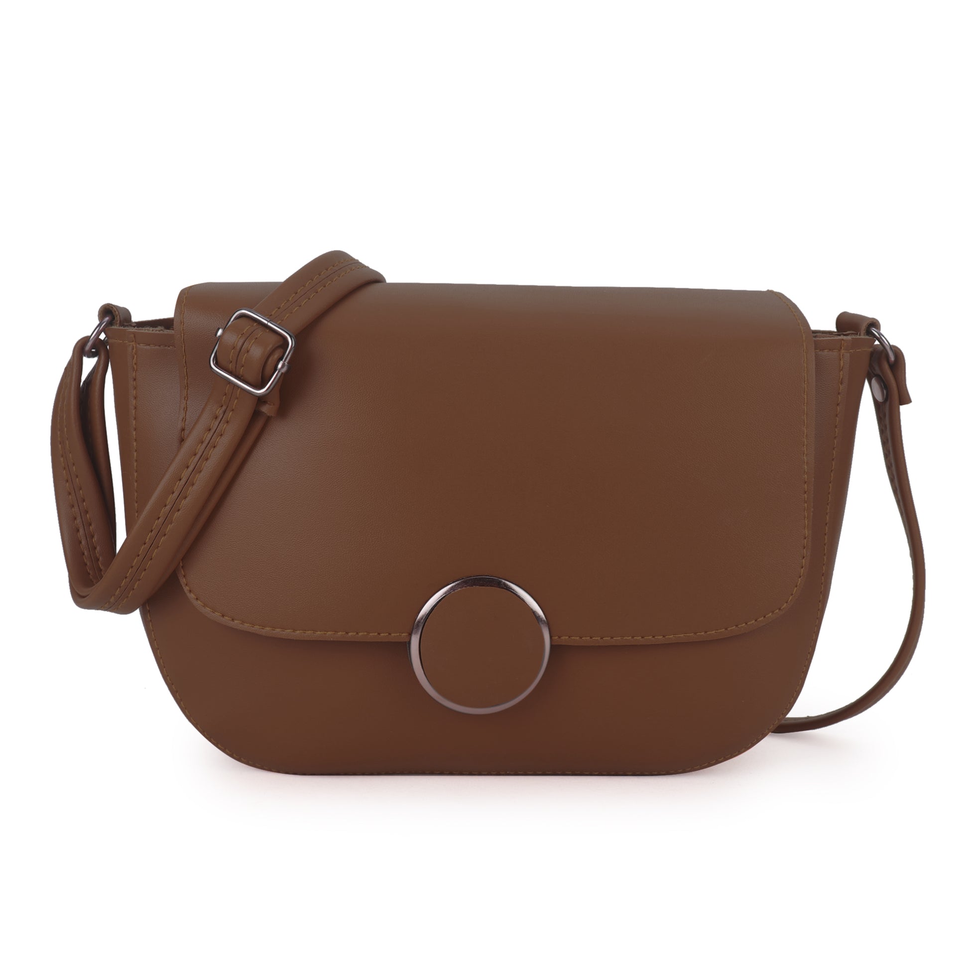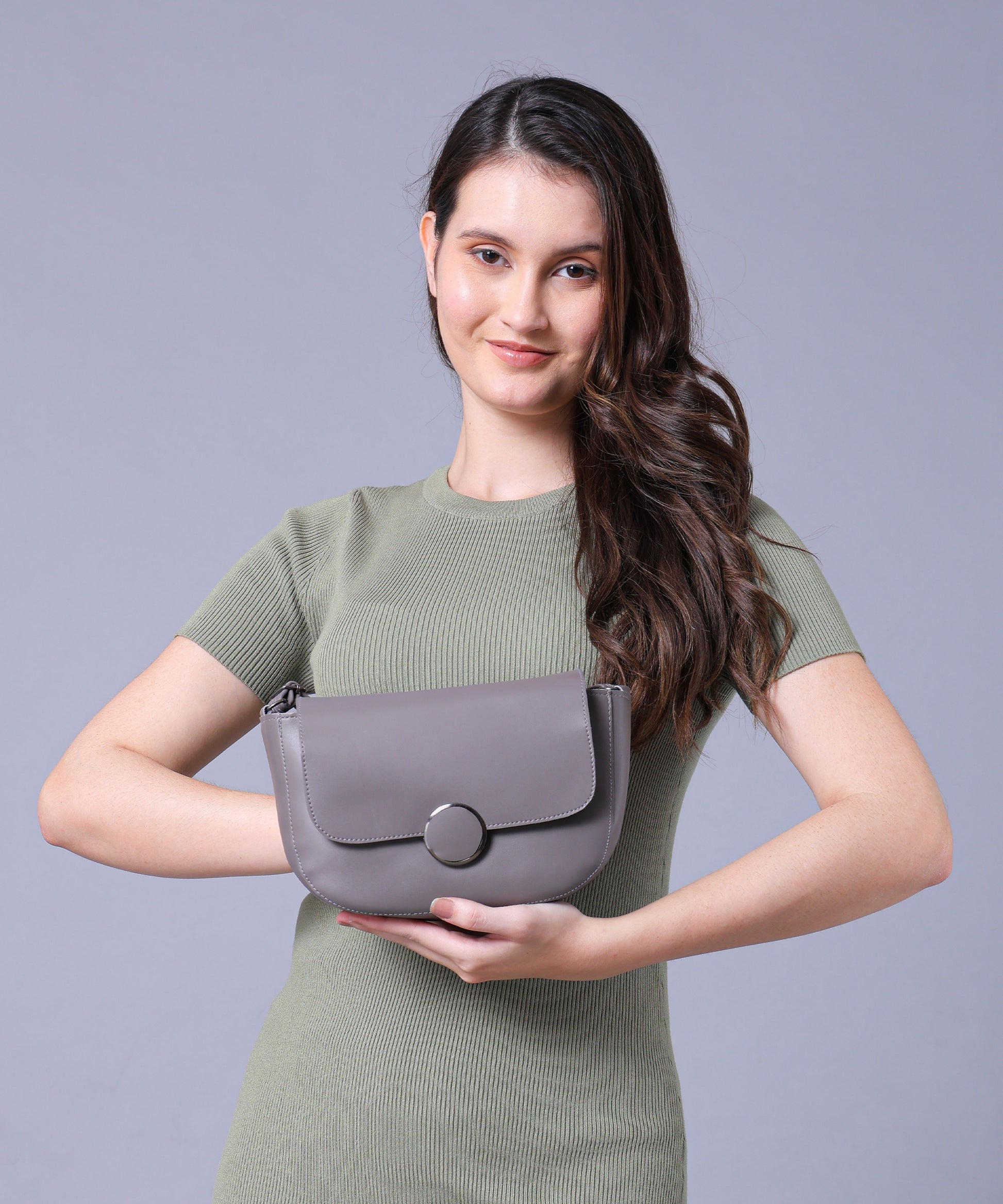 • PREMIUM DESIGN: Elegant faux leather crossbody bag featuring a sleek round metal buckle closure and contemporary minimalist styling