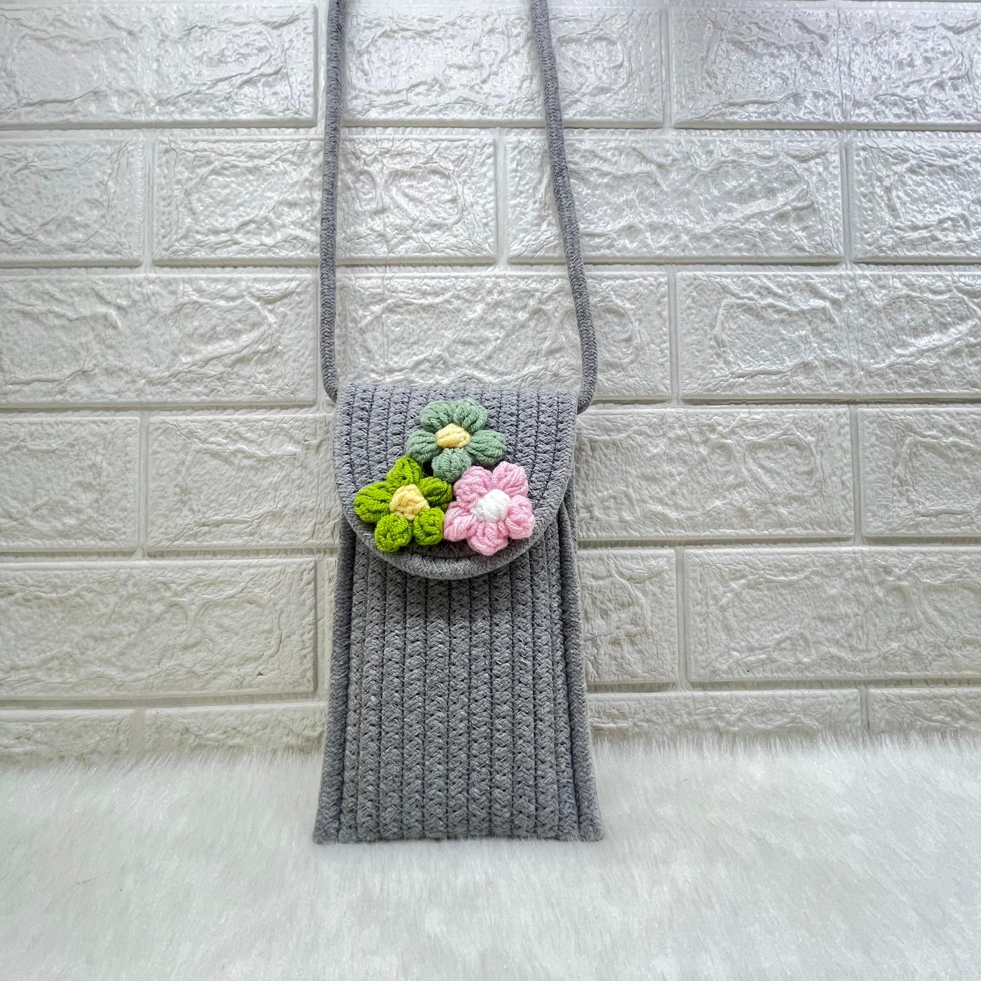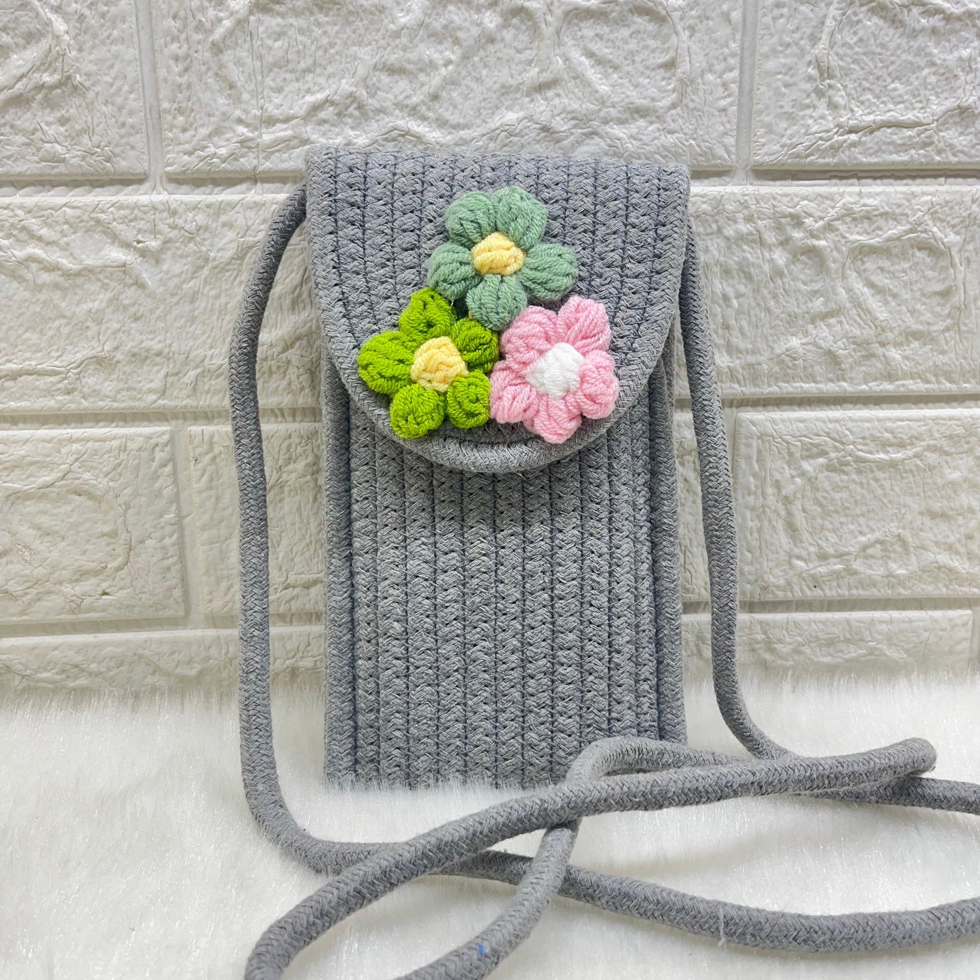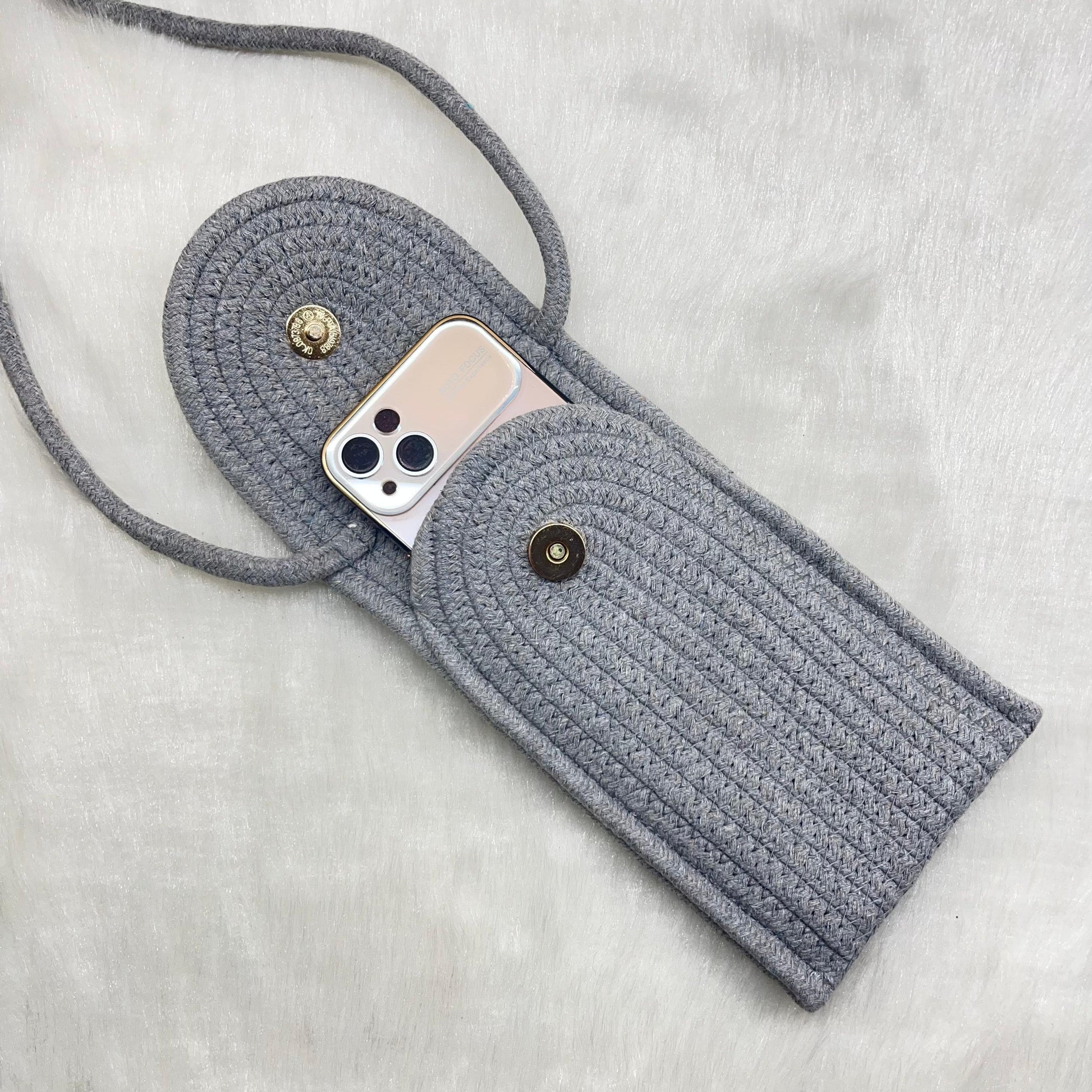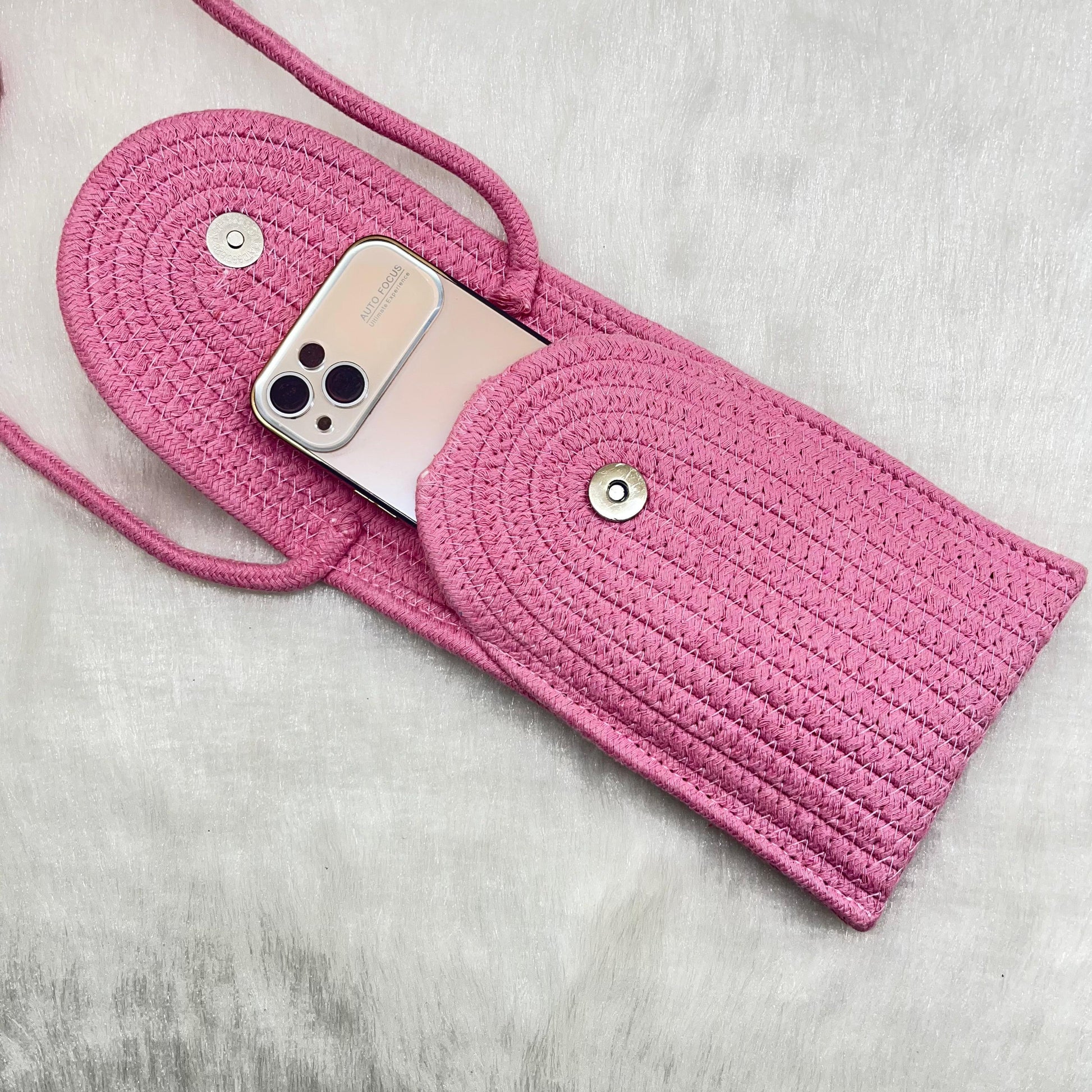 Women's Jute Mobile Cell Phone Holder Pocket Wallet Hand Purse Clutch Cross body Sling Bag